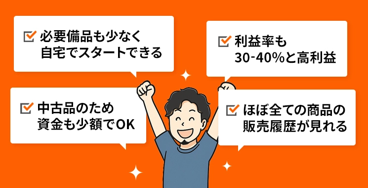 中古せどりは副業の中でも「リスクが小さく利益が大きい」ことが特徴です。