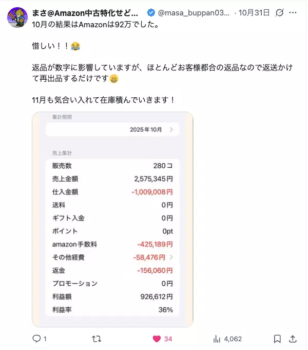 特にこの 「中古せどり×Amazon」というジャンルでは