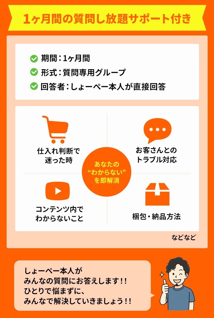 1ヶ月間の質問し放題サポートをおつけいたします!!